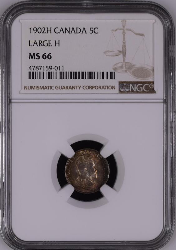 Канада 5 центов 1902 г. H, NGC MS66, "Король Эдуард VII (1902 - 1910)"