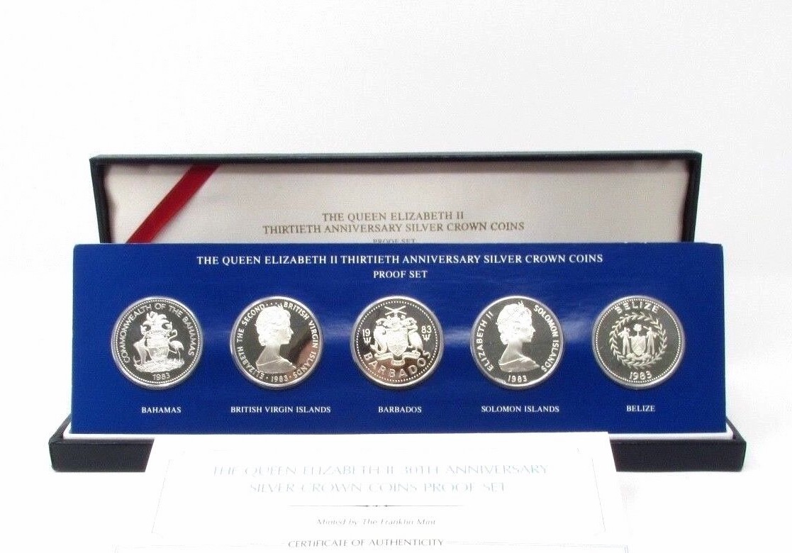 Британские территории набор 5, 10, 25 долларов 1983 г., PROOF, "30 лет коронации Королевы Елизаветы II"